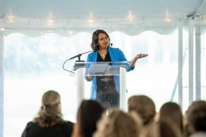 Hannah Pingree, former Director at Governor’s Office of Policy Innovation & the Future, told the audience about her path from a small island community to the forefront of public leadership. She spoke about the necessity of women’s participation in construction and governance, emphasizing that solving today’s most urgent challenges will require collective action, innovation, and inclusive leadership.